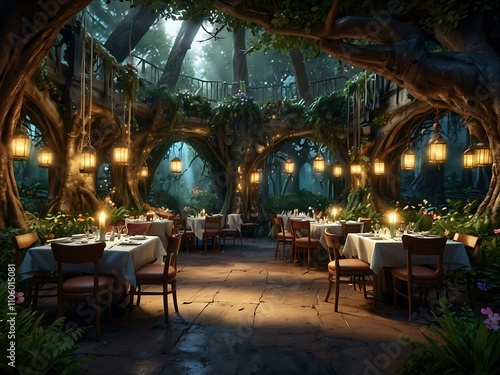 © claudunia, Naklejka premium Enchanted forest restaurant concept.