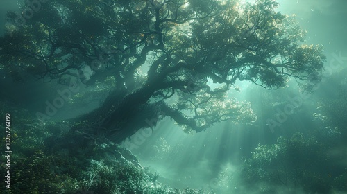 Fototapeta premium Enchanted Forest: Sunlight Through the Mist