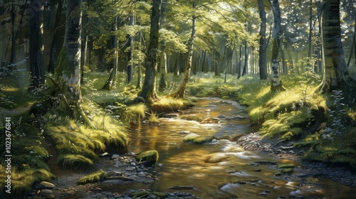 Fototapeta premium Enchanted Forest Sunlit Creek Serenity