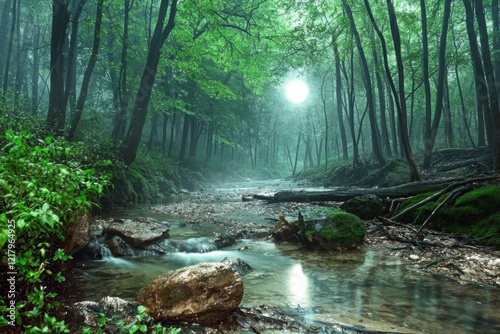 © Sung Hwan Kim, Obraz premium enchanted forest with moonlit streams