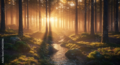 © Amartha, Obraz premium Enchanted Forest with Sunlight Beams