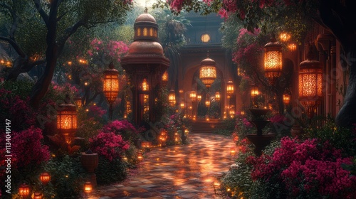 Obraz premium Enchanted Garden Pathway: A Night of Arabian Nights