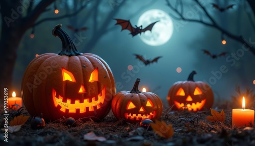 Fototapeta premium Enchanted Halloween night under the full moon