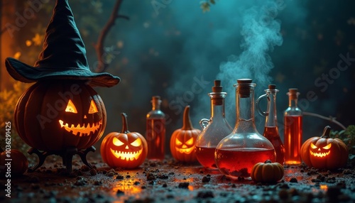 © SwathiFX, Fototapeta premium Enchanted Halloween potion brewing session