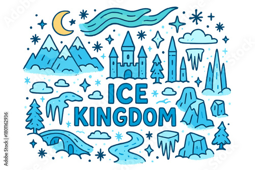 Fototapeta premium Enchanted Ice Kingdom. Ice kingdom. Hand-drawn doodle illustration of ice...