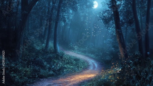© ayu sulistyaningtyas, Obraz premium Enchanted Moonlight Forest Path