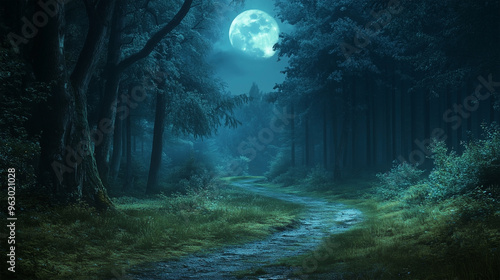 © PACHARA, Obraz premium Enchanted Moonlit Forest Path