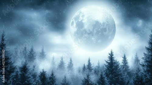 Fototapeta premium Enchanted Moonlit Forest Scene Under a Glowing Full Moon