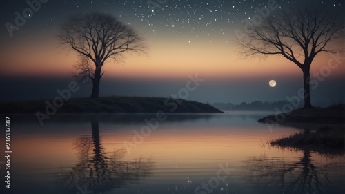 Naklejka premium Enchanted Moonlit Landscape at Twilight.