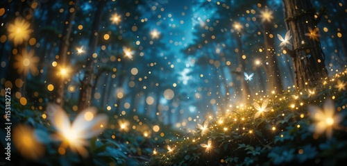 Naklejka premium "Enchanted Night: A Dance of Glowing Fireflies"