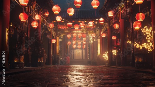 Obraz premium Enchanted Night in Chinatown: Red Lanterns Illuminate Ancient Street