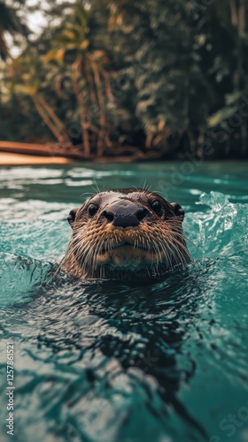 Fototapeta premium Enchanted Otter in a Lush Tropical River