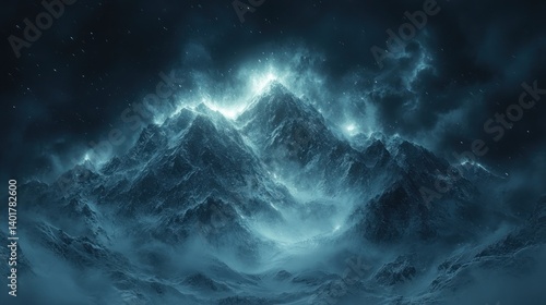 Fototapeta premium Enchanted Peaks: A Night of Mystical Mountains