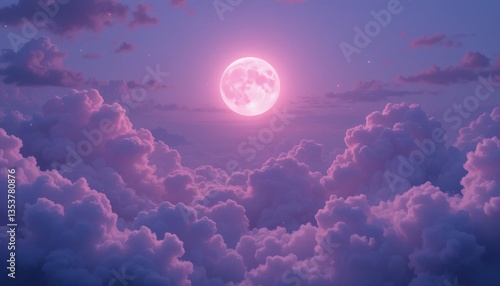 © Chainarong, Fototapeta premium Enchanted Pink Moonlit Sky Lavender Clouds and Soft Moonlight