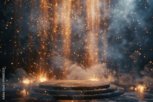 © nik_yurginson, Obraz premium Enchanted Podium in a Realm of Stardust