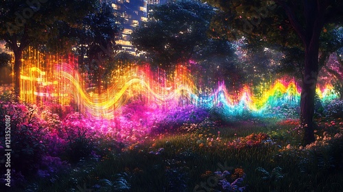Naklejka premium Enchanted Rainbow Lights Illuminating A Night Garden