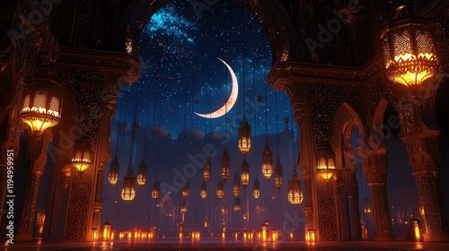 Obraz premium Enchanted Ramadan Night: A Digital Vision of Islamic Architecture under a...