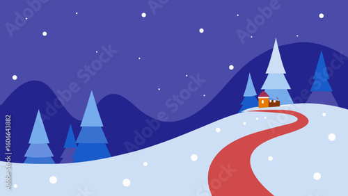 Naklejka premium Enchanted Sleigh Trail in a Snowy Meadow
