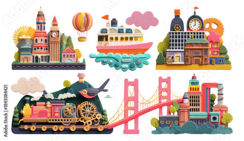 © PRI, Obraz premium Enchanted Steampunk Cityscape in Isolated Transparent Background with Whimsical Elements