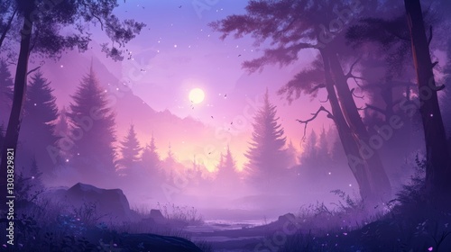 Obraz premium Enchanted Sunset: A Dreamlike Forest at Dusk
