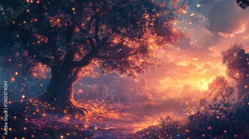 Obraz premium Enchanted Sunset: A Magical Forest at Dusk