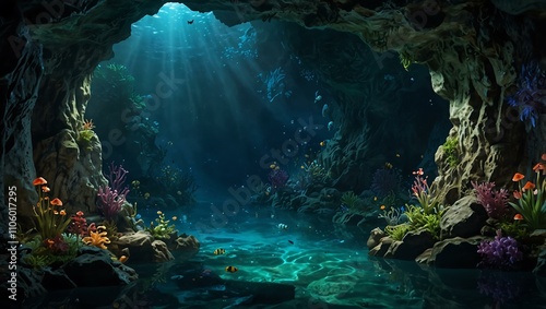 Obraz premium Enchanted underwater cavern in hyperrealistic detail.
