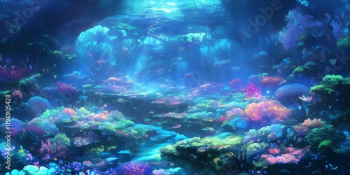 Fototapeta premium Enchanted Underwater Coral Forest . Anime style