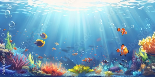 Naklejka premium Enchanted underwater seascape with sunlight rays