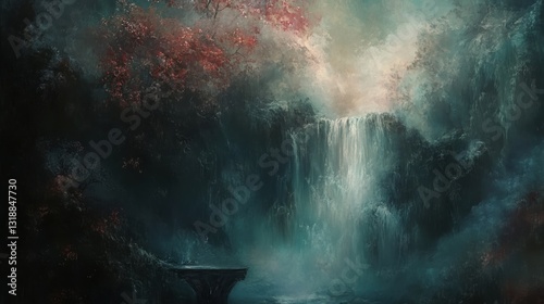 © Zahra, Fototapeta premium Enchanted Waterfall in a Mystical Forest