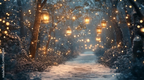 © imageX, Naklejka premium Enchanted Winter Flyer with Fairy Lights and Ample Text Area