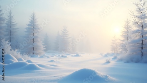 Naklejka premium Enchanted Winter Wonderland Sunlit Snowy Forest Scene