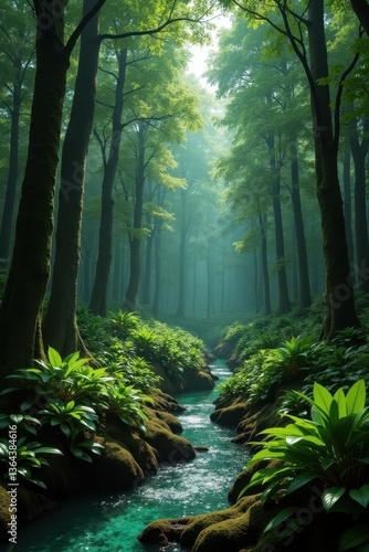 © volga, Obraz premium Enchanted with lush greenery serene stream