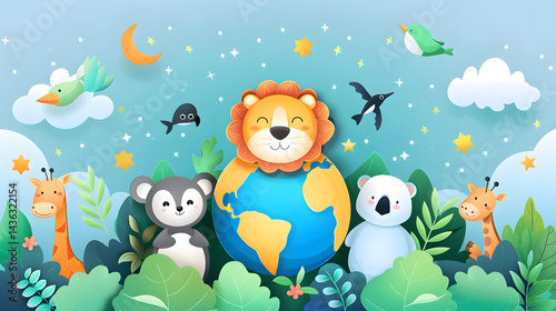 Naklejka premium Enchanting animal characters, celebrating global harmony and nature's...