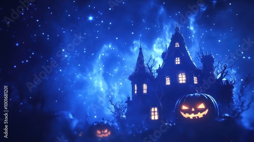 Naklejka premium Enchanting Blue Silhouette of a Haunted House
