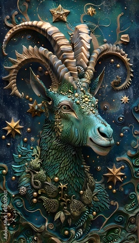 Fototapeta premium Enchanting Celestial Goat Creature Against Starry Night Sky