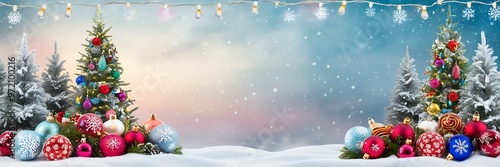 Naklejka premium Enchanting Christmas Background with Festive Decorations, Snowflakes, and...