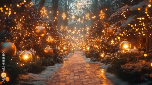Naklejka premium enchanting christmas scene with twinkling fairy lights ornate ornaments and...
