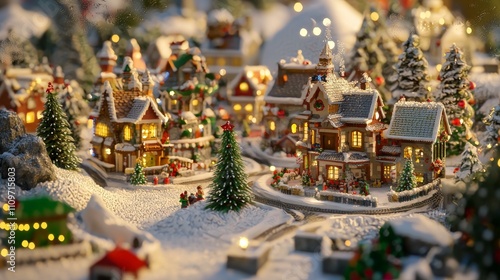 Fototapeta premium Enchanting Christmas Village: Fantasy Creatures Celebrating the Holidays with...