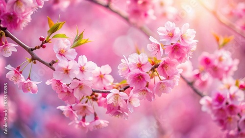 Fototapeta premium Enchanting closeup of pink cherry blossoms with dreamy blurred background,...