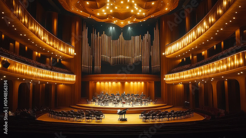 Obraz premium Enchanting Concert Hall with Self-Playing Instruments Inspiring Nightly Musical Creation