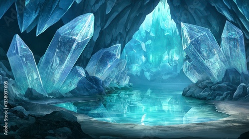 © Artistic Visionary, Fototapeta premium Enchanting Crystal Cave with Serene Water Reflections