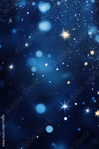 Fototapeta premium Enchanting Dark Blue Glitter Bokeh: A Magical Holiday Background for...