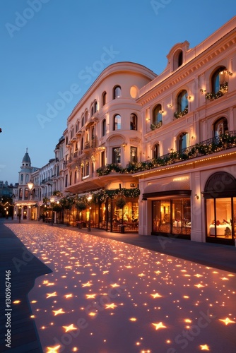 Fototapeta premium Enchanting Evening Street Lights and Elegant Architecture in Holiday Setting