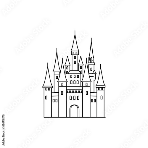 © ArtyKris99, Obraz premium Enchanting fairy tale castle illustration in minimalist style