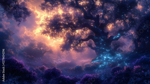© Thawatchai, Obraz premium Enchanting Fantasy Forest Aglow with Bioluminescent Wonders