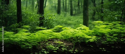 Obraz premium Enchanting Ferns Embrace Serene Lush Green Forest Canopy Amidst Nature's Splendor