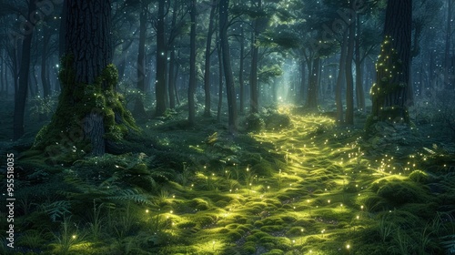 © ACE STEEL D, Fototapeta premium Enchanting Firefly Path in a Magical Forest