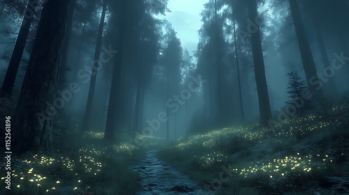 © lisa, Obraz premium Enchanting Forest Path Glowing With Night Blooms