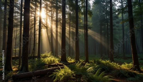 © Василь Тігай, Obraz premium Enchanting Forest Sunlight Rays