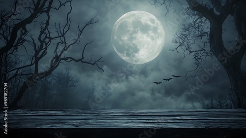 Fototapeta premium Enchanting Full Moon Over a Dark Forest Perfect for Halloween Night